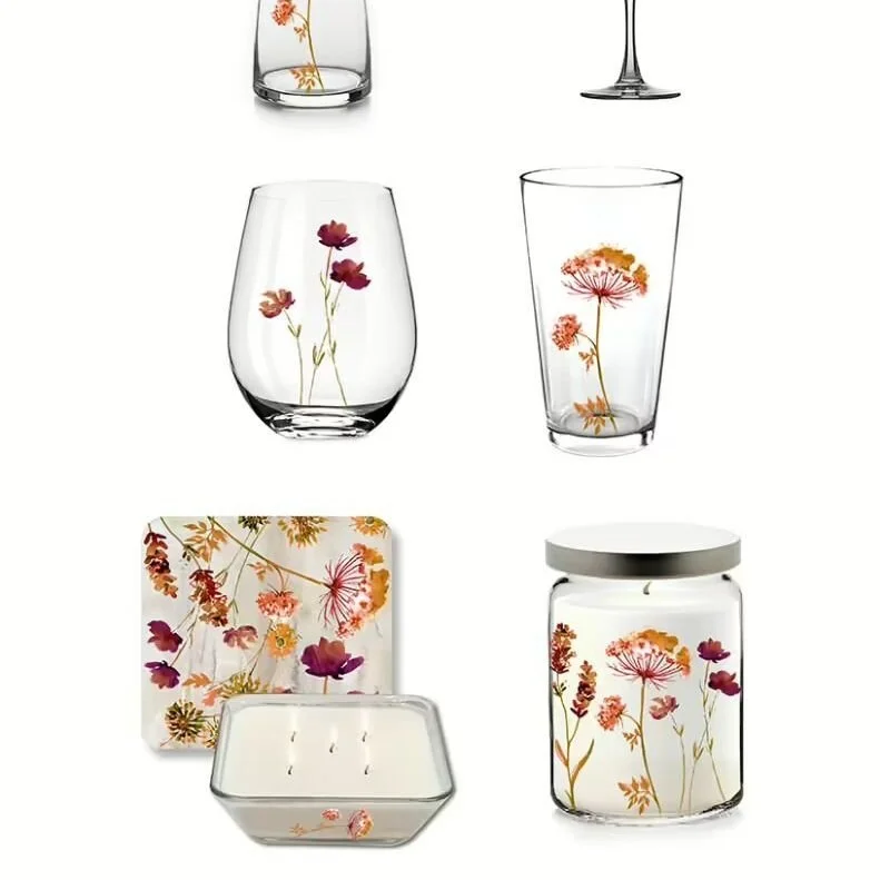 Elaine Swann Rustic Bloom Collection ~ Glassware and Soy Candle 9 Piece Set