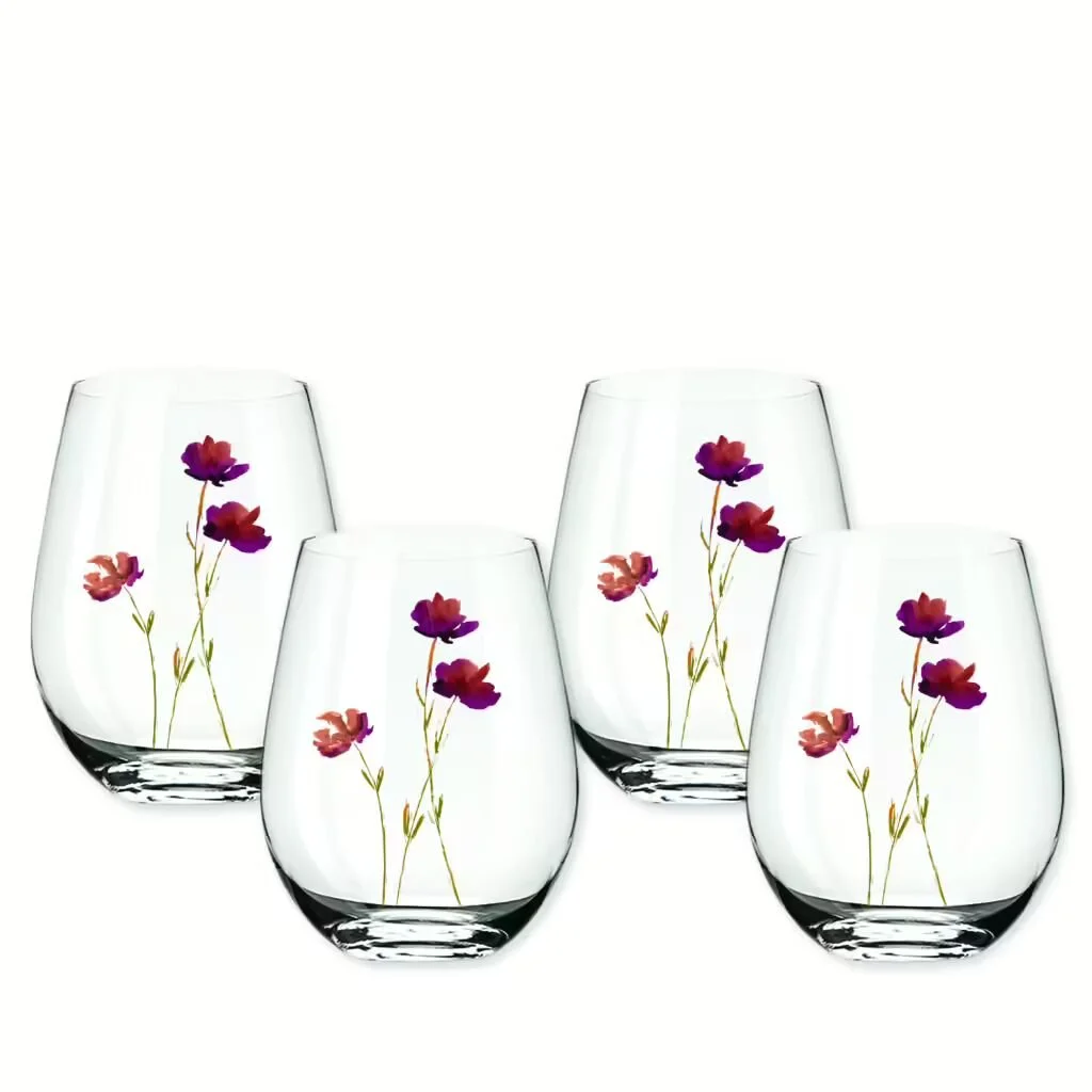 Elaine Swann Rustic Bloom Glassware Collection ~ Stemless 16oz Wine Glasses – Set of 4