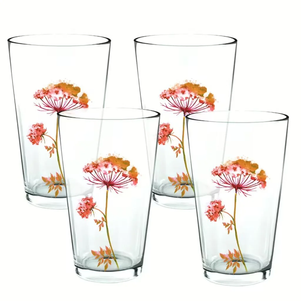 Elaine Swann Rustic Bloom Glassware Collection ~16oz Glass – Set of 4