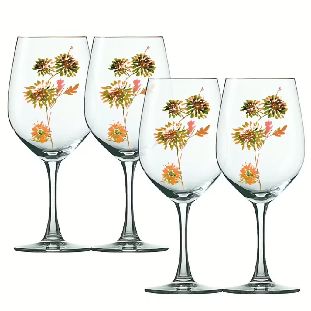 Elaine Swann Feathered Sprigs Glassware Collection ~ Stemless 16oz Wine Glasses – Set of 4