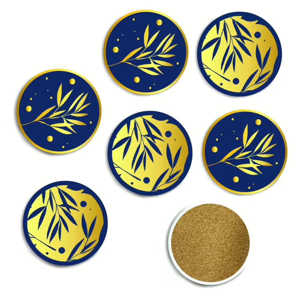 Elaine Swann Feathered Sprigs Collection 4″ Circle Ceramic Coasters – 6 Piece Set