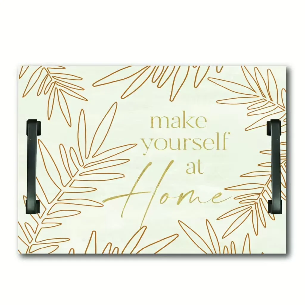 Elaine Swann Feathered Sprigs Collection ~ 14″x 20″x .5″ Decorative Wooden Serving Tray – Gold